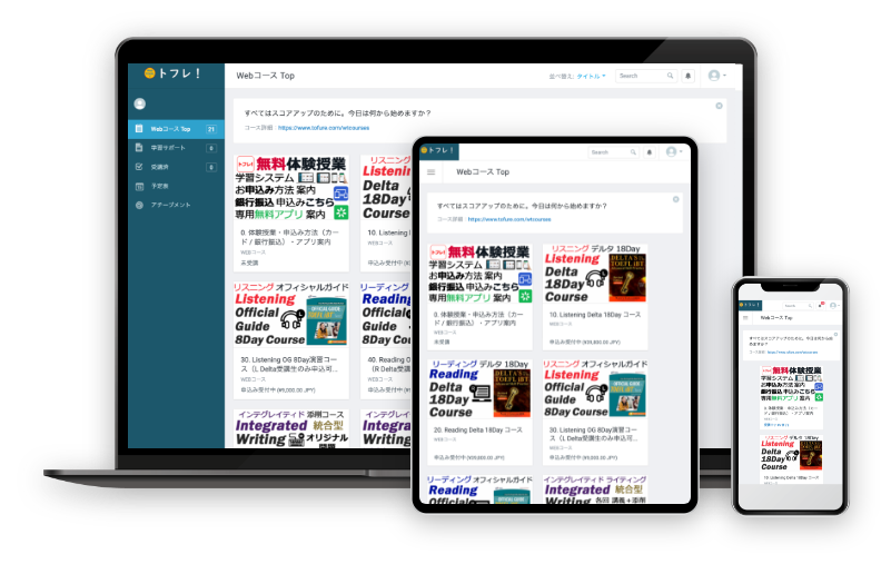 いつでも便利に学習家でも職場でもカフェでも通勤電車でもTOEFL対策を進められます。スマホならオフラインでも受講できます。日々の学習時間が多く取れないなか、学習を最大限効果的にします。
