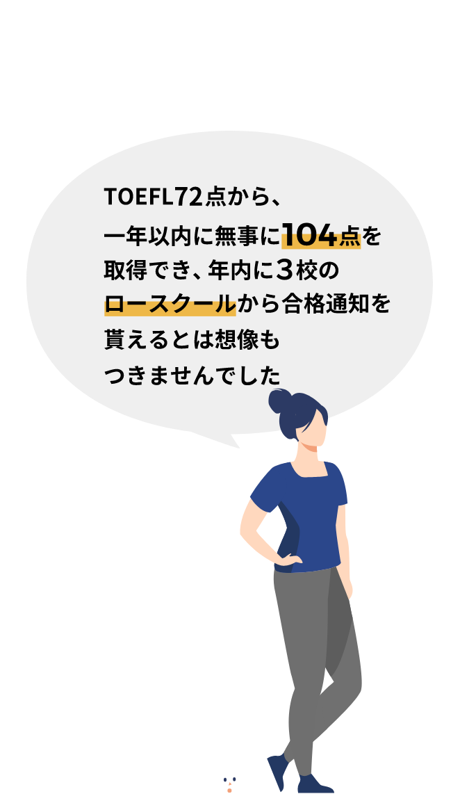 体系的に学べるコース「いろいろと英語力アップに取り組んでいるのにスコアが上がらない」という方にTOEFLスコアアップのために習得すべきことを分かりやすく整理して、大切なところは繰り返し教授します。